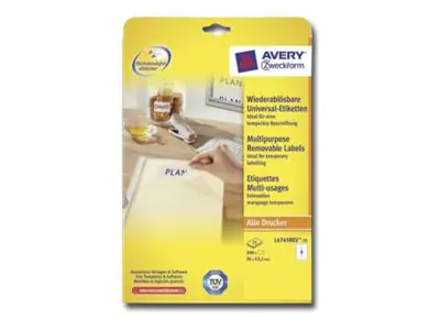 Die wiederablösbaren Universal-Etiketten von Avery Zweckform lassen sich mit allen gängigen Druckern und Kopierern bedrucken und garantieren einen staufreien Druckerdurchlauf. Diese Aufkleber bieten Ihnen für jeden Bedarf und Anwendungsbereich die passende Lösung und sind rückstandsfrei wiederablösbar. Kostenlose Software und Vorlagen finden Sie unter www.avery-zweckform.eu/print.