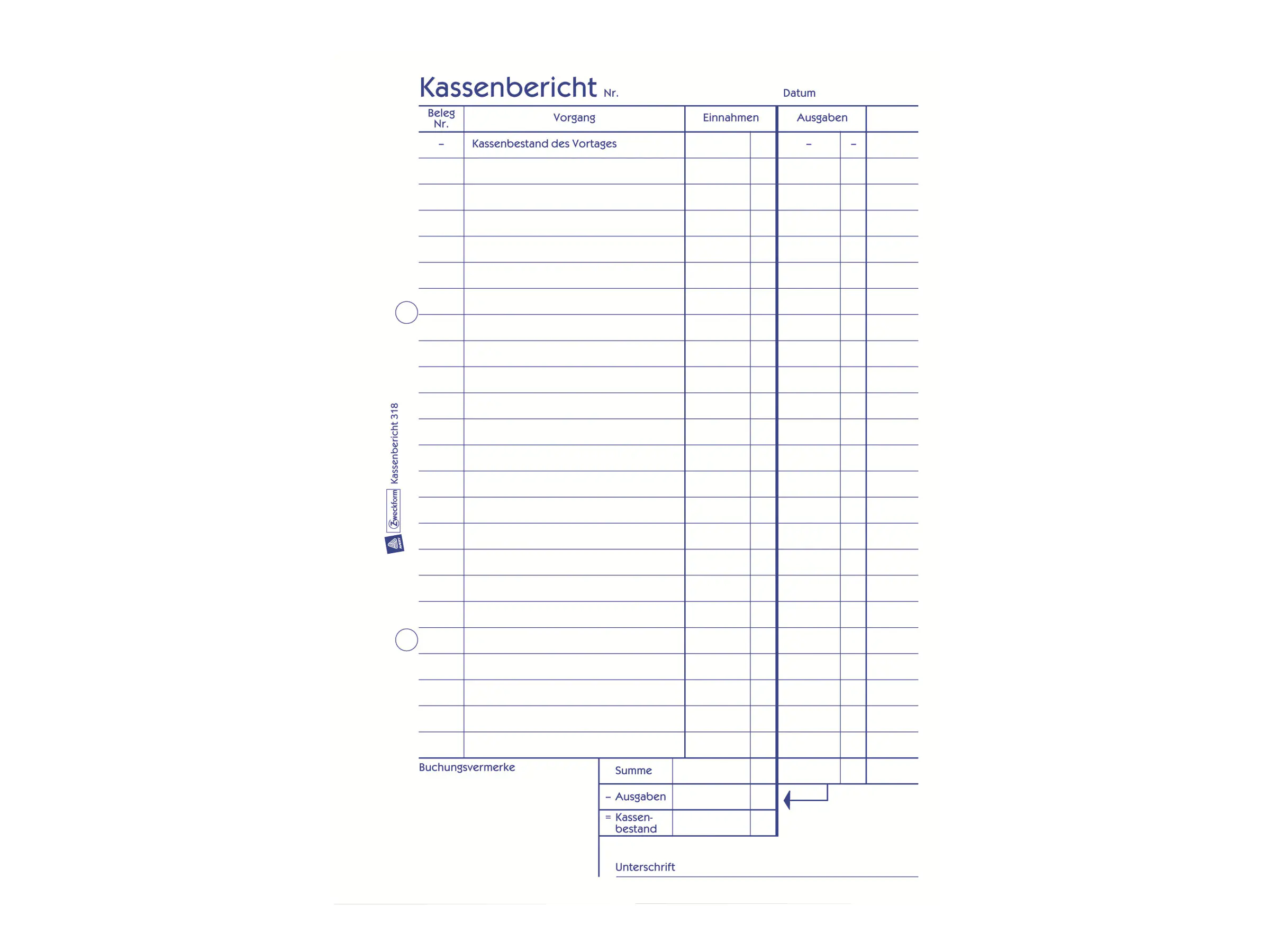 Erfassen Sie taggenau alle Zahlungsvorgänge mit der Kassenbestandsrechnung von Avery Zweckform. Das Formular hilft Ihnen bei der rechnerischen Ermittlung der Tageseinnahmen und des Kassenbestands am Ende des Tages. Die Kassenbestandsrechnung beinhaltet 50 mikroperforierte Originale. Die Kassenformulare von Avery Zweckform werden regelmäßig von Rechtsexperten überprüft und aktualisiert.
