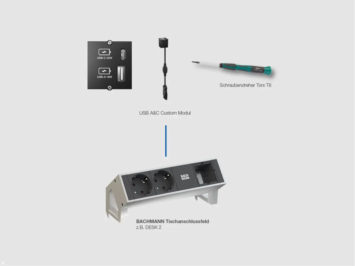 | Beschreibung | Bachmann Custom module - Modulares Faceplate-Snap-In USB Type A - USB Typ C - Schwarz | |||