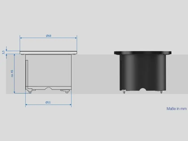 - Geringer Einbaudurchmesser von 56 mm