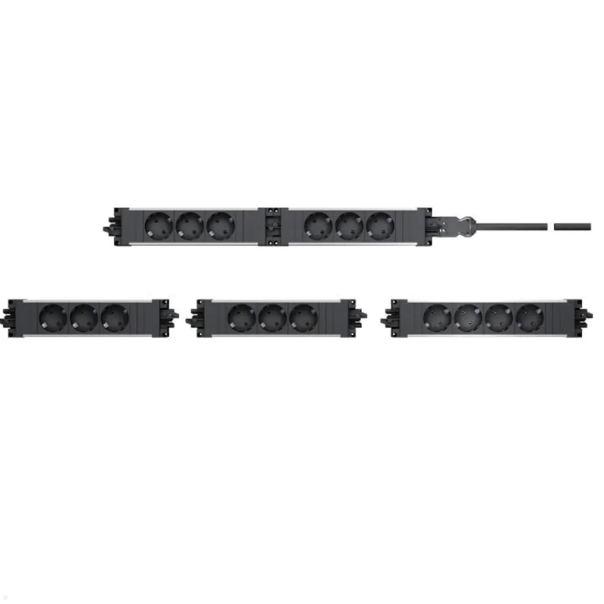 - Verkettung der Energieleisten untereinander mittels Geräteverlängerungen