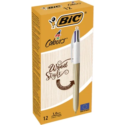 BIC® Mehrfarbkugelschreiber 4 Colours® Wood Style 0,4mm rot, blau, grün, schwarz Refill 4 colours Druckmechanik