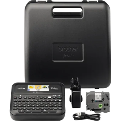 - Inklusive Schriftbandkassette, Netzadapter, Transportkoffer und USB-Kabel