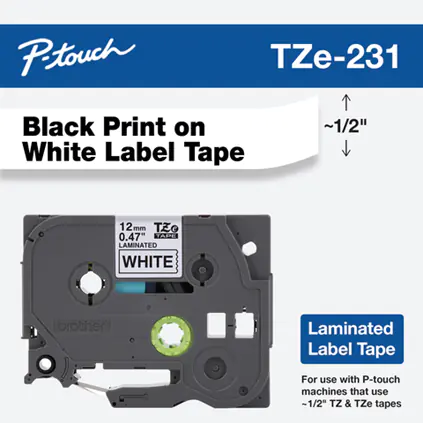 Brother TZe-231 - Standard-Klebstoff - Schwarz auf Weiß - Rolle (1,2 cm x 8 m) 1 Kassette(n) laminiertes Band - für Brother PT-D210, D600, H110; P-Touch PT-1005, 1880, E800, H110; P-Touch Cube Plus PT-P710