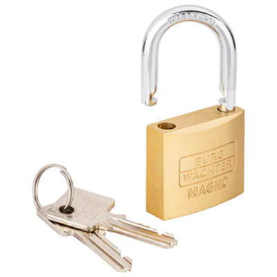 Das Vorhängeschloss Magno ist für viele Anwendungen im Alltag ideal geeignet. Das Magno Vorhängeschloss aus gehärtetem und verchromtem Messing bietet robusten Schutz gegen Aufbruchversuche. Des Weiteren sorgen die Konstruktion und der gehärtete Bügel für eine hohe Zerreißfestigkeit. as Schloss trotzt über lange Zeit Wind und Wetter. Dafür sorgen die rostresistenten Innenteile vom Magno. So ist stets eine korrekte Schließung des Zylinders möglich. Gleichschließend und doppelt verriegelt.