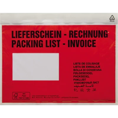 Zum Anbringen von Begleitpapieren außen an der Sendung. Aufdruck in mehreren Sprachen.