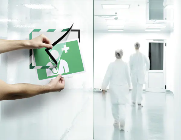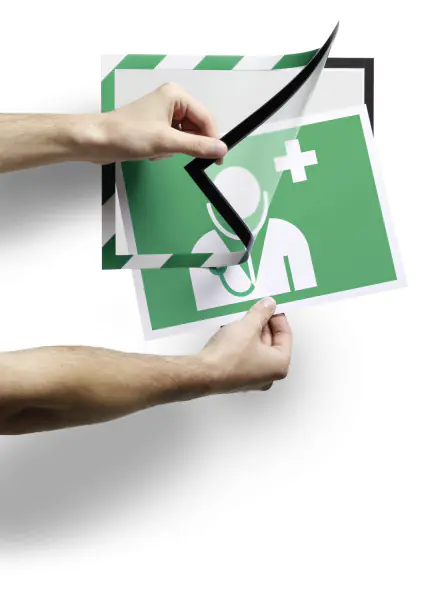 - Sicherheitskennzeichnungen und Anweisungen können schnell und einfach ausgewechselt werden und sind beidseitig lesbar