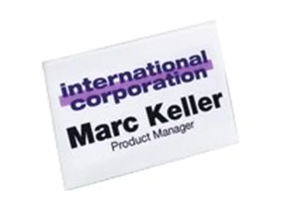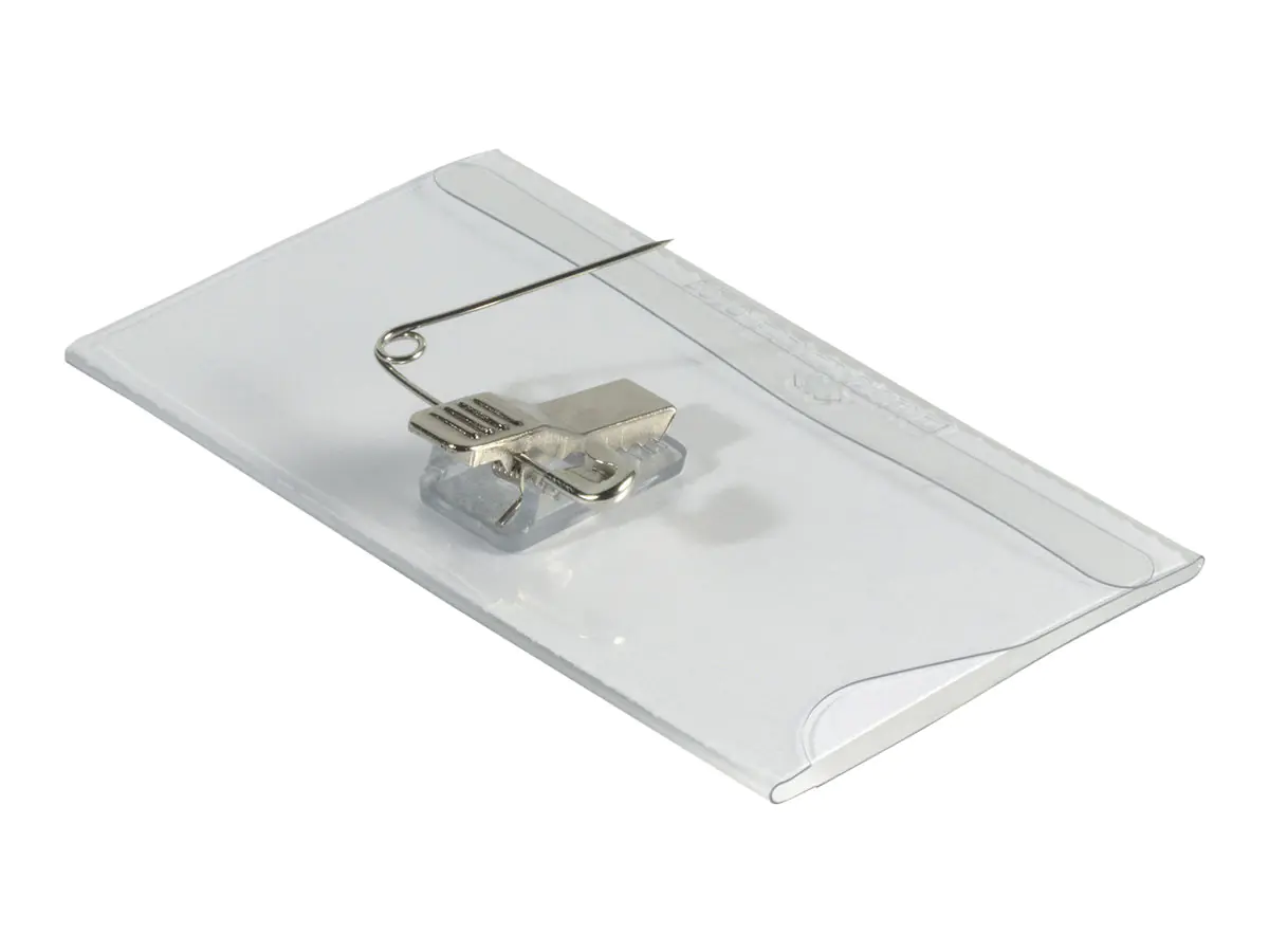 Durable Namensschild mit Kombiklemme. Ausrichtung: Landschaft, Material: PVC, Produktfarbe: Transparent. Breite: 90 mm, Höhe: 54 mm. Menge pro Packung: 50 Stück(e)