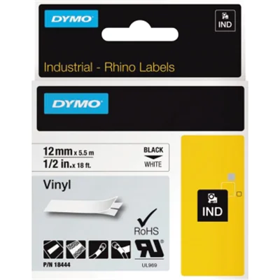 DYMO IND All-Purpose - Vinyl - Klebstoff - Schwarz auf Weiß - Rolle (1,2 cm x 5 m) 1 Kassette(n) Etikettenband - für LabelMANAGER 210, 280, 360, 420, PnP; Rhino 4200, 5200; RhinoPRO 6000