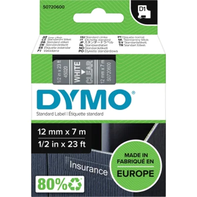 | Dymo D1 - Selbstklebend - White on Transparent - Rolle (1,2 cm x 7 m) | ||||