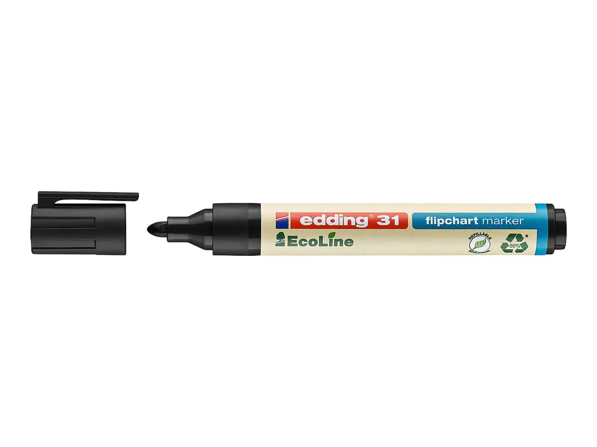 - Nachhaltiger Flipchartmarker, denn die Kunststoffteile sind insgesamt mindestens zu 90% aus recyceltem Material
