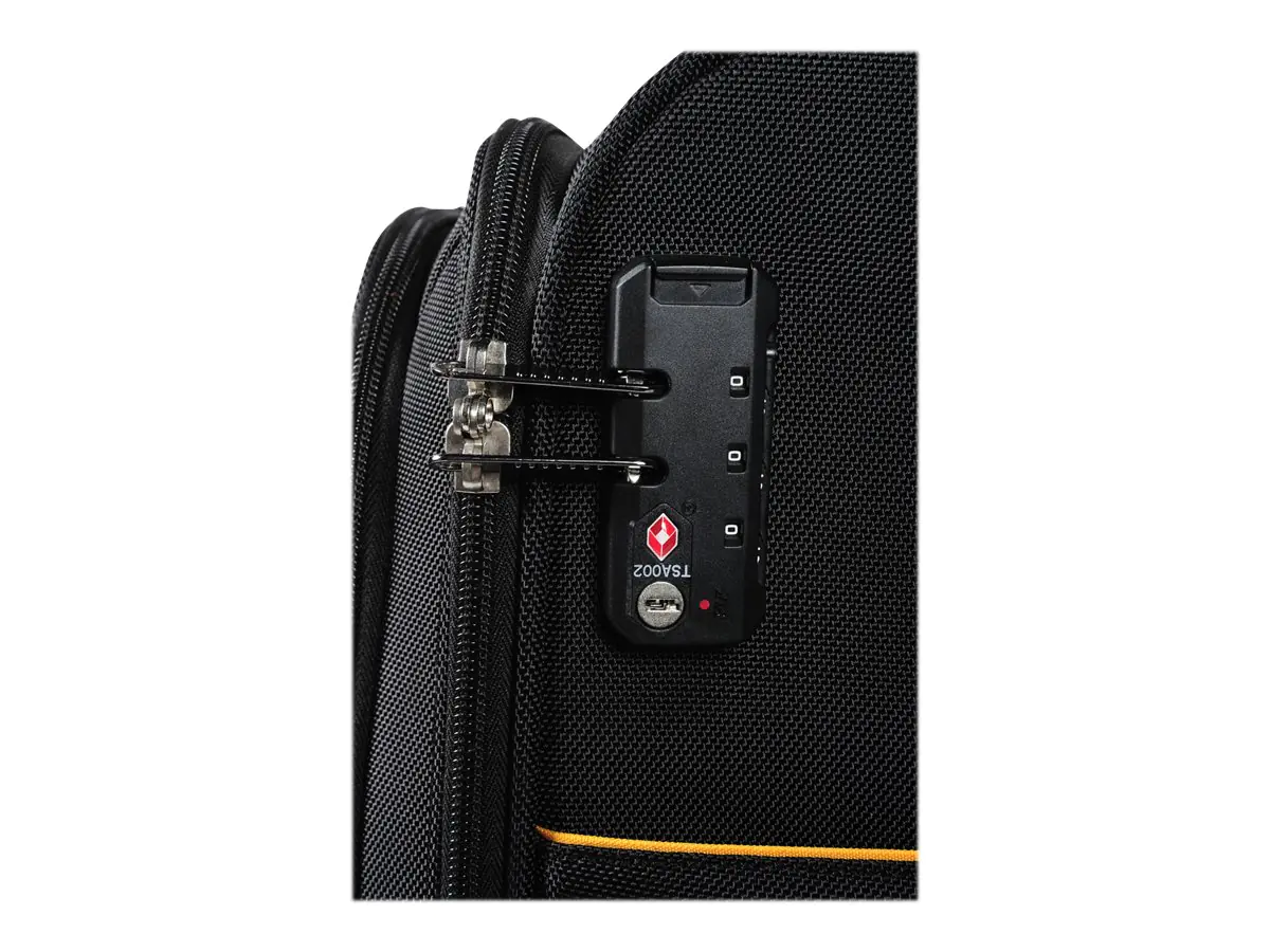 - seperat gepolsterte Taschen für Laptop und Notebook, integriertes TSA-Hängeschloss, zwei integrierte USB-Anschlüsse, ein integrierter Mikro-USB-Anschluss, Kabel, Kreuzbandgurt, herausnehmbares Kulturtäschchen