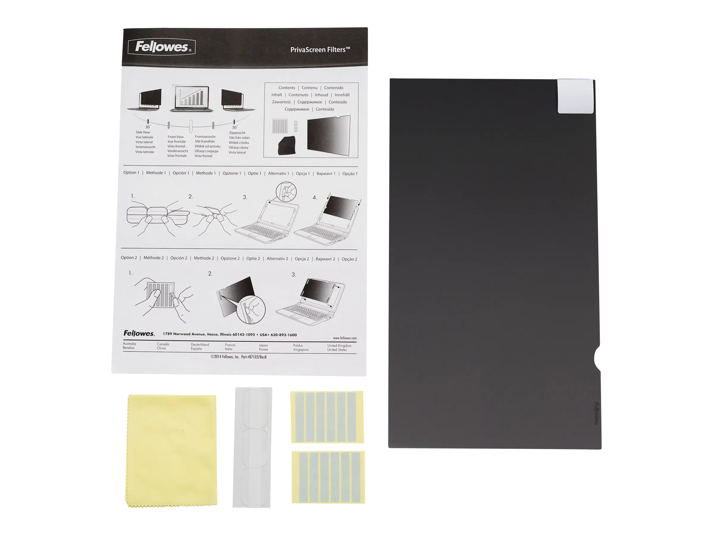 Schützen Sie Ihre Privatsphäre in der Öffentlichkeit und machen Sie vertrauliche Informationen unsichtbar für neugierige Blicke Dritter! Kein Problem mit den Fellowes PrivaScreen™ Blackout Blickschutzfiltern für Laptops, Tablets, Smartphones und Monitore. Bei einer Seitenansicht von nur 30° erscheint der Bildschirm komplett schwarz. Nur bei direkter Draufsicht sind die Informationen klar lesbar. So arbeiten Sie bedenkenlos auch unterwegs. PrivaScreen™ Blackout Blickschutzfilter lassen sich einfach mit Hilfe der selbstklebenden Reiter anbringen und jederzeit wieder abnehmen. Für eine besonders stabile Anbringung sind doppelseitige Klebestreifen als Alternative auch im Lieferumfang enthalten. PrivaScreen™ Blickschutzfilter schützen Ihren Bildschirm gegen Kratzer und Fingerabdrücke und reduzieren die Blendung. Fellowes Blickschutzfilter sind eine sinnvolle Lösung für alle Unternehmen, die auf Datenschutz Wert legen, für Mitarbeiter im Außendienst, Vielreisende und für Berufspendler.