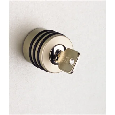 Drehtür. Dreipunktverriegelung. Drehknauf. Höhenjustierbar durch den Boden 0-10 mm. Sockelblende 10 cm hoch.
