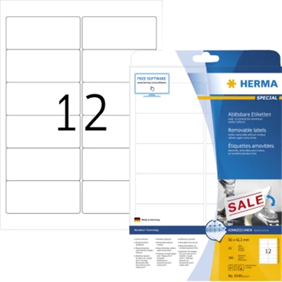 HERMA Special - Papier - matt - selbstklebend, entfernbarer Klebstoff - weiß - 96 x 42.3 mm 300 Etikett(en) (25 Bogen x 12) Etiketten
