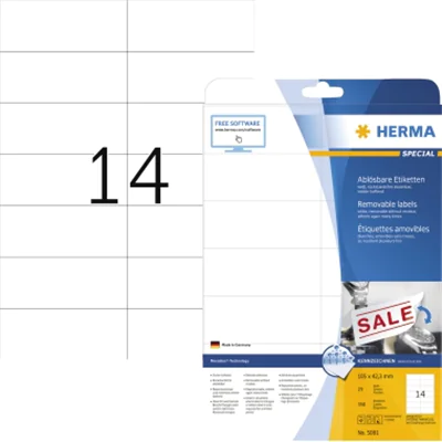 HERMA Special - Papier - matt - selbstklebend, entfernbarer Klebstoff - weiß - 105 x 42.3 mm 350 Etikett(en) (25 Bogen x 14) Etiketten