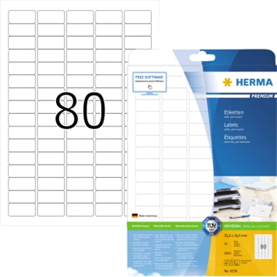 HERMA Premium - Papier - matt - permanent selbstklebend - weiß - 35.6 x 16.9 mm 2000 Etikett(en) (25 Bogen x 80) laminierte Etiketten