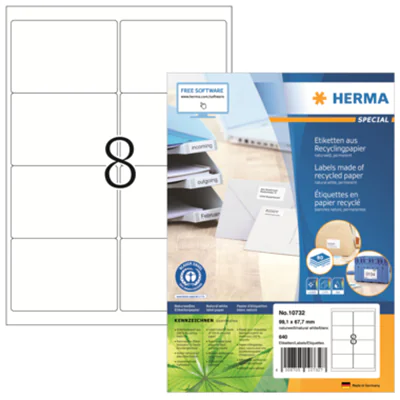 HERMA Universaletikett Recycling 99,1 x 67,7 mm (B x H) nicht wieder ablösbar Papier, 100 % recycelt naturweiß 640 Etik./Pack.