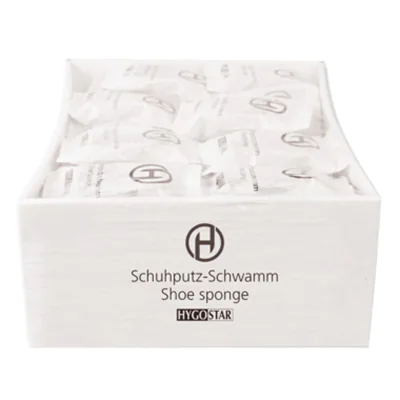 Immer saubere Schuhe zu haben ist eine Herausforderung, gerade wenn man unterwegs ist und im Hotel übernachtet. Bieten Sie Ihren Gästen als zusätzlichen Service einen Schuhputzschwamm. Die praktischen Schwämme mit Reinigungsemulsion reinigen und entfernen Schmutz mit wenigen Handgriffen. Die Rückseite kann zum Polieren der Schuhe verwendet werden. Alle Schuhputzschwämme sind einzeln verpackt und hygienisch frisch für Ihre Gäste.