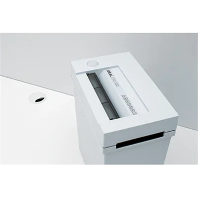 Bedienerfreundlicher Schredder für den umweltbewussten Anwender. EASY-Touch-Mehrfunktionsschalter für Stand-by, Stopp (Aus), Rückwärtslauf und integrierte Leuchtanzeigen. Lichtschranke für automatischen Start/Stopp. Reversierautomatik mit automatischer Abschaltung. Zero Energy Stand-by Modus: Komplette, automatische Netztrennung nach 15 Minuten. Sicherheitsklappe in der Zuführöffnung als Eingriffschutz. Zweifache Motorsicherung gegen Überhitzung. Bu¨roklammernfeste Vollstahl-Messerwellen aus gehärtetem Spezialstahl. Seitliche Griffmulden zum Abheben des Gerätekopfes.
