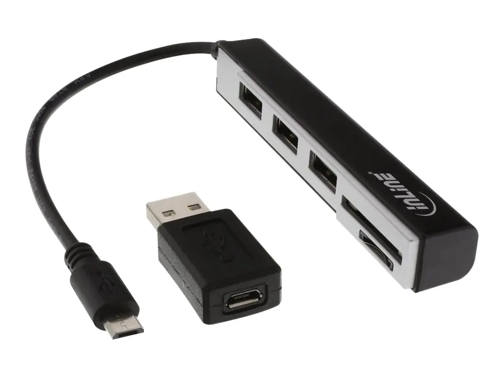 InLine OTG Cardreader with 3 Port USB Hub - Kartenadapter (SD, miniSD, SDHC, microSDHC, SDXC, miniSDXC) - micro USB 2.0