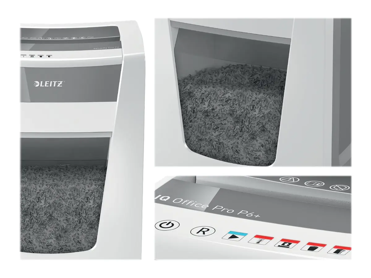 Der Leitz IQ Office Pro ist nicht nur äußerst schick, sondern arbeitet auch extrem leise, sodass er selbst in größeren Büros nicht stört. Er kann 4 Stunden im Dauerbetrieb eingesetzt werden und ist dank Touch Control und Anti-Papierstau-Technologie leicht zu bedienen. Die Sicherheitsstufe bietet höchste Sicherheit auch bei sensiblen Daten. 1 zusätzliches Jahr Garantie bei Registrierung.