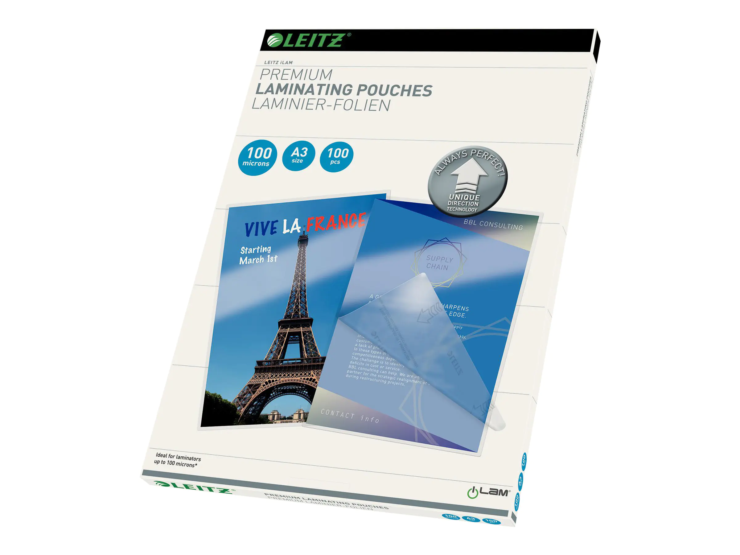 - Einfaches Einle.g.en mit der Unique Direction Technology - die richtungsweisenden Pfeile verschwinden beim Laminieren!