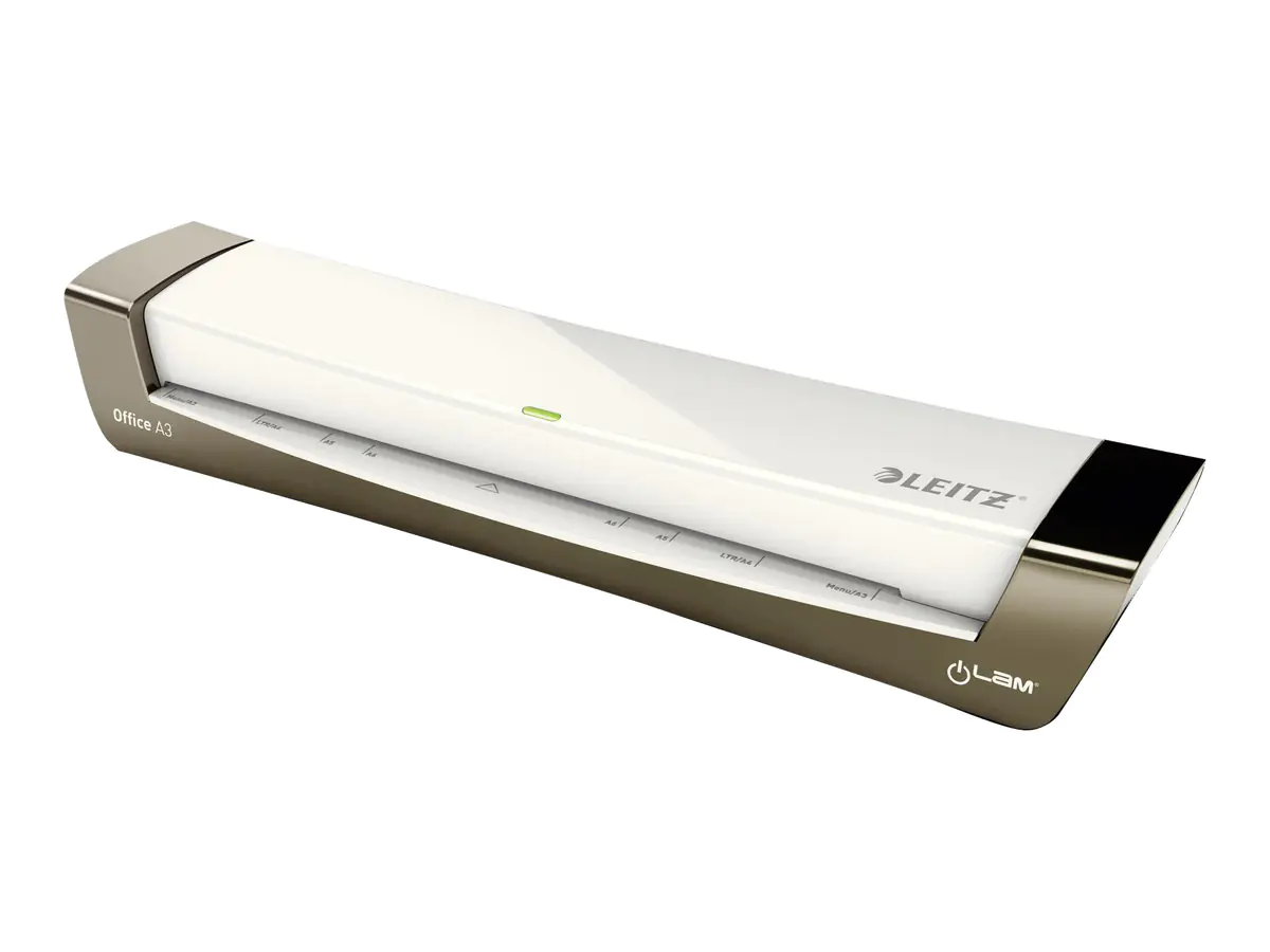 Leitz iLAM Laminator Office. Kompakter, schnell einsatzbereiter Laminator. Ideal für kleinere Unternehmen. Laminator mit schlankem Design und High Speed Vorheizen.Mit Freigabeschalter, um verklemmte Dokumente zu entnehmen. Mit indirekter Heizung über den Rollen. Einfaches Laminieren mit perfekten Ergebnissen, keine komplizierten Einstellungen erforderlich. Ideal fürs Laminieren von Kleinauflagen. Eignet sich perfekt für das moderne Büro und lässt sich leicht verstauen. Niedriger Energieverbrauch, automatische Abschaltung nach 30 Minuten, wenn nicht im Gebrauch. LED Bereitschaftsanzeige und Warnton. Empfohlen für die Verwendung mit Leitz UDT Folien.