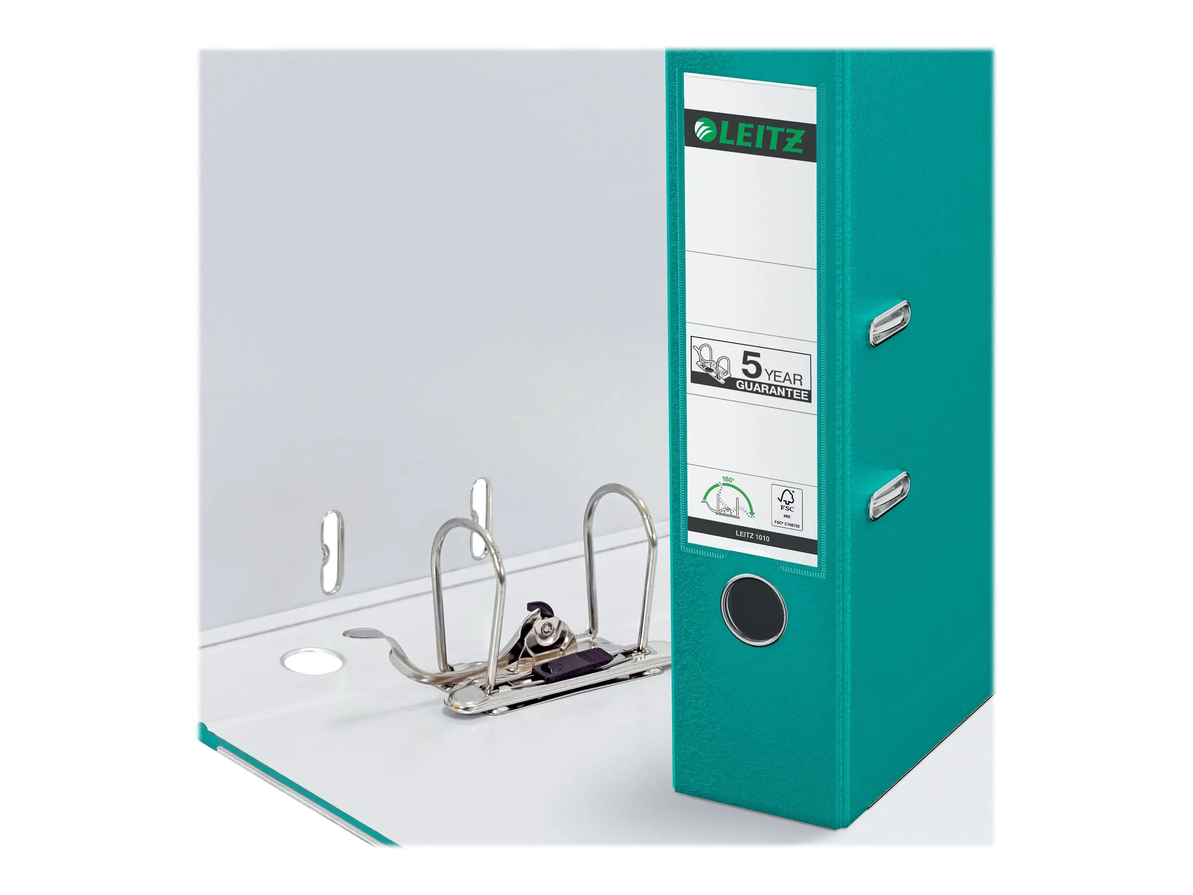 Mit patentierter 180°-Präzisionshebelmechanik. 50% weitere Mechaniköffnung für schnelleres und komfortableres Arbeiten. Ablegen auch auf der linken Seite möglich. Sichttasche am Rücken für auswechselbares Kartonrückenschild. 5 Jahre Garantie auf die Mechanik.