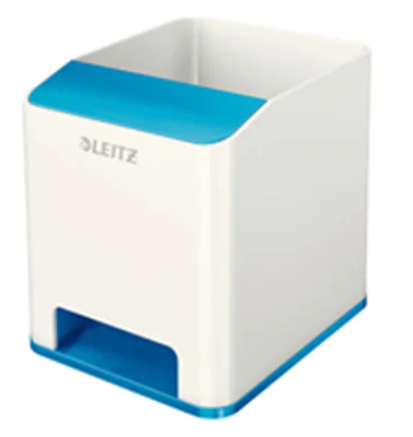 Der Design-Stifteköcher passt perfekt zu allen anderen Produkten der Leitz WOW Serie. Modernes, zeitgemäßes Design zu Hause und im Büro. Viel Platz für Schreibgeräte, Lineal, Stylus und mehr. Extra Fach für Ihr Smartphone (bis iPhone 6 Plus) mit Soundverstärkungsfunktion - erhöht das Klangvolumen Ihres Mobiltelefons. Der Smartphone Bildschirm bleibt vollständig sichtbar.