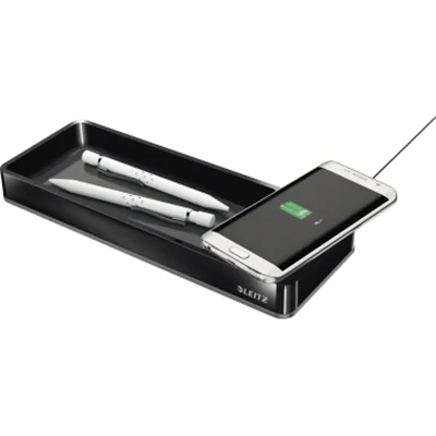 Stifteschale mit integriertem Qi Ladegerät in modernem zweifarbigem DuoColour Effekt in Hochglanz und Premium-Qualität. Laden Sie das Smartphone ganz ohne Kabelgewirr dank integriertem Qi-Induktionsladegerät. Einfache Bedienung dank LED Anzeige die die korrekte Ladesposition signalisiert. Engergiesparend da der Ladevorgang sofort gestoppt wird, wenn Smartphone vollständig geladen ist. Für alle Smartphones mit eingebautem Empfänger für kabellose/induktive Ladegeräte oder mit spezieller Induktionshülle.