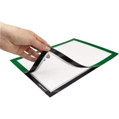 Auf Glas sind Rahmen und Dokumente sogar doppelseitig sichtbar, wenn Vorder- und Rückseite bestückt werden. Rückstandlos ablösbar und flexibel nutzbar, um Dokumente regelmäßig auszuwechseln. Im Hoch und Querformat einsetzbar.