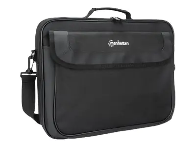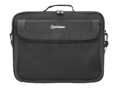 Manhattan Cambridge Laptop Bag 15.6", Clamshell Design, Black, LOW COST, Accessories Pocket, Document Compartment on Back, Shoulder Strap (removable), Equivalent to Targus TAR300, Notebook Case, Three Year Warranty - Notebook-Tasche - 39.6 cm (15.6") - Sc