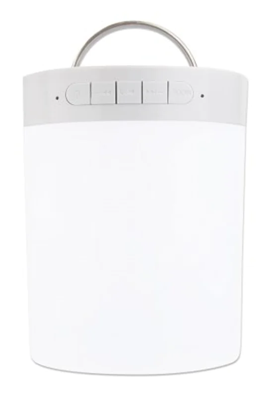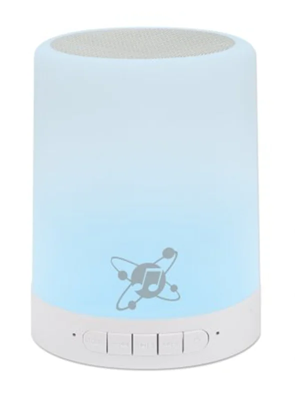 Manhattan Sound Science Bluetooth Speaker (Clearance Pricing), 5 hour Playback time, Range 10m, microSD card reader (32GB), Aux 3.5mm connector, Output 3W, USB-A charging cable included, 1200mAH battery, Bluetooth v5, Built-in hanger, White, 3 Year Warran