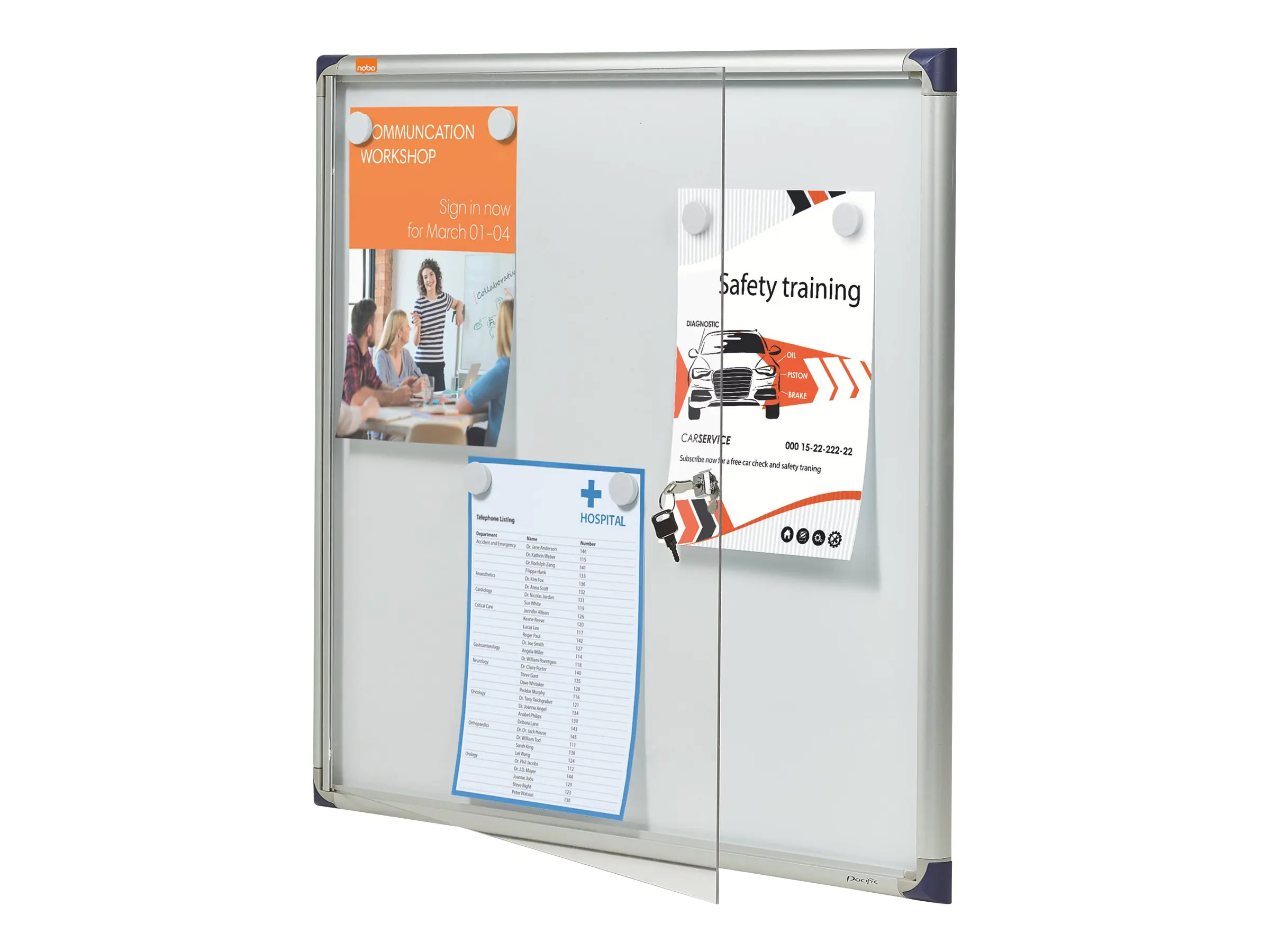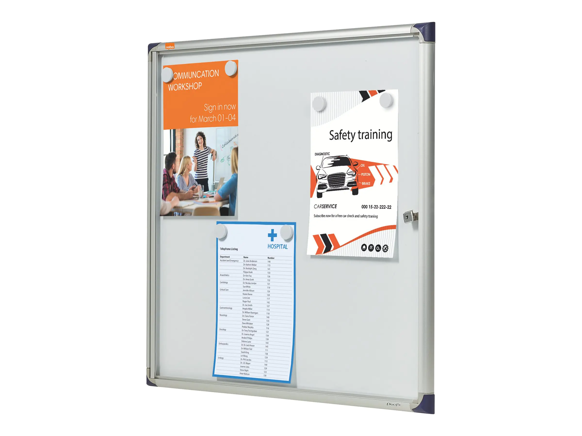 Präsentieren Sie wichtige Informationen einfach und sicher in einem verschließbaren Nobo Schaukasten. Diese extraflachen, praktischen Kästen eignen sich perfekt für vielbenutzte Korridore und Arbeitsplätze. Sie können Aushänge mit Magneten befestigen oder die Weißwandtafel mit Boardmarkern beschriften.