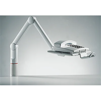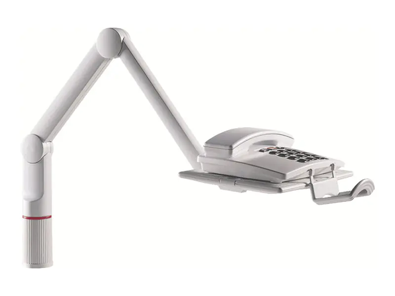 Novus Telefonschwenker mit 2-teiligem Gelenkarm für die Positionierung in 3 festen Stufen. Die flexible Tragplatte lässt sich quer oder längs montieren.