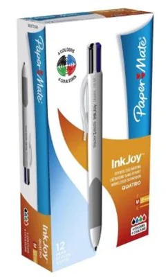 Der Quatro bietet Ihnen 4 Farben in einem Kugelschreiber. Durch seine schlanke Form und seine Gummibeschichtung ist er bequem zu handhaben und leicht zu führen. Über seine großen Knöpfe können Sie die gewünschte Farbe ganz leicht auswählen. Er eignet sich hervorragend für Lehrer und alle, die häufig zwischen Schreiben und Korrigieren wechseln. Der Quatro schreibt mühelos auf Papier in verschiedenen Farben, sei es auf Karteikarten oder anderen Schreibwaren. Die InkJoyT Technologie: Eine einzigartige Kombination aus dünnflüssiger Tinte und optimierter Schreibspitze sorgt für scharfe, klare Linien und bietet eine beispiellose Geschmeidigkeit. Die InkJoyT Kunst: Dank der großen Auswahl an Schreibgeräten in einem schlanken und modernen Design und der unerschöpflichen Farbpalette voll von lebendigen Tintenfarben können Sie Ihrer Kreativität beim Schreiben freien Lauf lassen. Die breite Spitze sorgt für eine schöne, solide und geschmeidige Linienführung für den allgemeinen Schreibgebrauch.