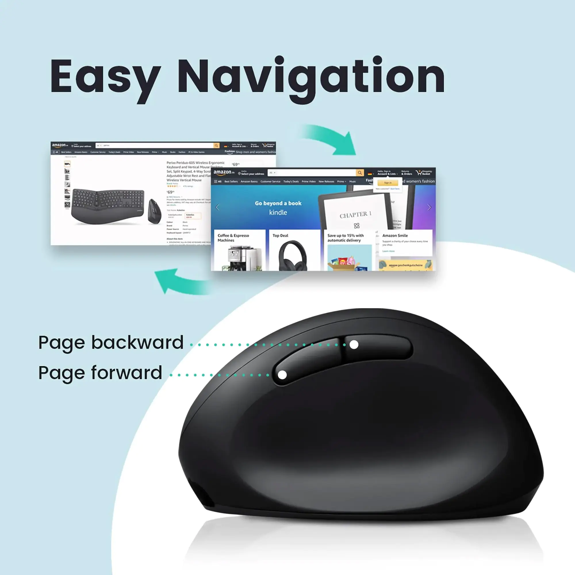Perixx PERIMICE-819 ergonimische vertikale Maus silent click Multi-Device - Maus - Optisch