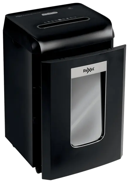 Elektrischer Aktenvernichter für Abteilungen oder Büros mit 5-10 Benutzern. Manuelle Papierzuführung. Manuelle und Auto-Reverse Funktion. Anti-Papierstau-Technologie. LED-Warnleuchte für Überhitzungsschutz. Einfach zu leerender, herausziehbarer Abfallbehälter mit Sichtfenster.