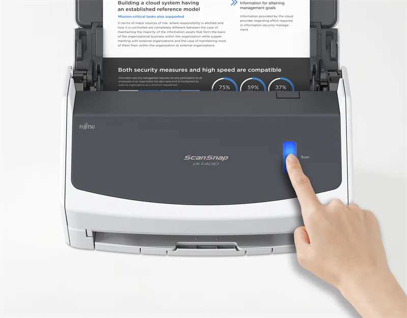 Entwickelt vom weltweit führenden Hersteller von Dokumentenscannern gestaltet der intuitiv zu bedienende iX1400 die Arbeit mit Dokumenten in Papierform so einfach wie möglich und verbindet die digitale mit der analogen Welt mit nur einer Berührung.