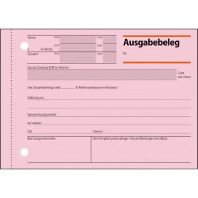 Ausgabebeleg mit Sicherheitsdruck. Mit Empfangsbestätigung.