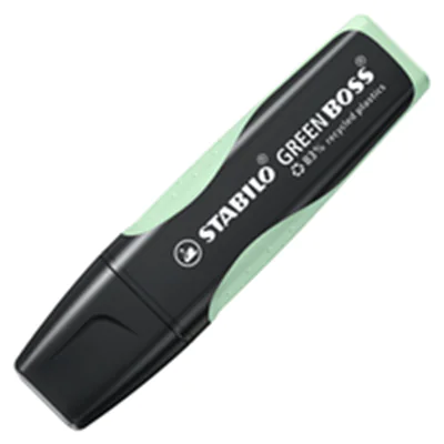 Der umweltfreundliche Textmarker GREEN BOSS Pastell kombiniert Qualität mit Nachhaltigkeit und ist die perfekte Wahl für alle umweltbewussten Kunden. Hergestellt aus 83 % recyceltem Material, um die natürlichen Ressourcen zu schonen. Durch die einzigartige STABILO Anti-Dry-Out Technologie zeichnet sich der GREEN BOSS Pastell ideal für langes konzentriertes Arbeiten aus und kann bis zu 4 Stunden ohne Kappe geöffnet bleiben, ohne auszutrocknen.