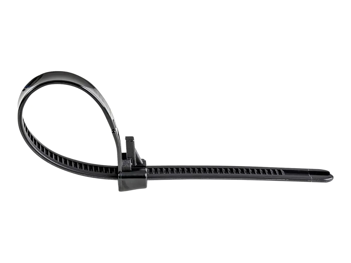StarTech 10"(25cm) Reusable Cable Ties, 1/4"(7mm) wide, 2-1/2"(65mm) Bundle Dia. 50lb(22kg) Tensile Strength, Releasable Nylon Ties, Indoor/Outdoor, 94V-2/UL Listed, 100 Pack, Black - Nylon 66 Plastic - TAA (CBMZTRB10BK) - Kabelbinder - 25 cm - Schwarz -