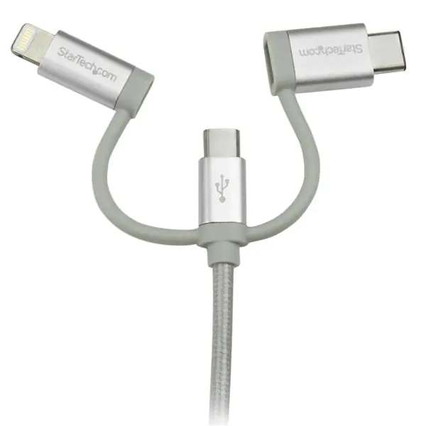 StarTech.com USB Lightning Kabel - USB-C Micro-B Laddekabel - 1m - geflochten - Silber - USB auf Lightning Kabel - USB zu USB C - USB-Kabel - USB (M) bis Micro-USB Typ B, Lightning, USB-C (M) - 1 m - Silber