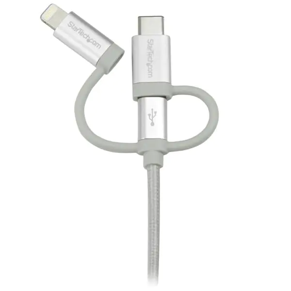 StarTech USB Lightning Kabel - USB-C Micro-B Laddekabel - 1m - geflochten - Silber - USB auf Lightning Kabel - USB zu USB C - USB-Kabel - USB (M) bis Micro-USB Typ B, Lightning, USB-C (M) - 1 m - Silber