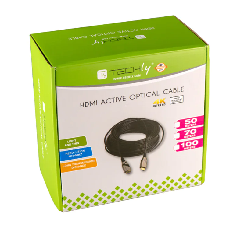 TECHly - Highspeed - HDMI-Kabel mit Ethernet - HDMI männlich zu HDMI männlich - 15 m - Glasfaser - Schwarz - aktiv, unterstützt 4K 60 Hz (3840 x 2160)