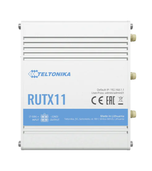 Teltonika RUTX11 - Wireless Router - WWAN 4-Port-Switch - 1GbE - Wi-Fi 5 - Bluetooth - an DIN-Schiene montierbar