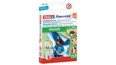Mit den tesa Powerstrips® Poster sind leichte und flache Gegenstände wie Poster, Charts und Zeichnungen im Handumdrehen an der Wand befestigt und können spurlos wieder abgelöst werden.