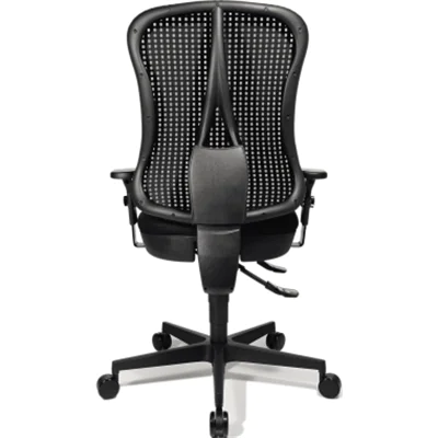 Klassischer Komfort-Drehstuhl mit atmungsaktiver Netz-Rückenlehne. Stufenlose Sitzhöhenverstellung mit Toplift. Ergonomische taillierte Rückenlehne mit integrierter Lendenwirbelstütze. Körpergewichtseinstellung individuell einstellbar. Neues Design-Fußkreuz, ausgerüstet mit lastabhängig gebremsten Sicherheitsdoppelrollen.