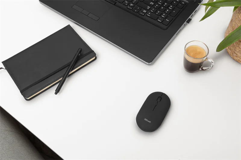 Trust Puck - Maus - rechts- und linkshändig - optisch - 4 Tasten - kabellos - Bluetooth, 2.4 GHz - kabelloser Empfänger (USB) - Schwarz